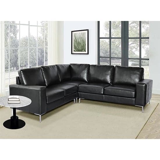 The Baltic Faux Leather Corner Sofa in Black is a stylish and comfortable addition to any living space. With its sleek and modern design, this corner sofa is sure to elevate the look of any room. The sofa is upholstered in high-quality faux leather, which gives it a premium feel and is easy to clean. The Black color adds a touch of sophistication and can be easily paired with any existing decor. This sofa is both functional and versatile, making it a great choice for families, friends, or anyone who loves to entertain. With its spacious seating area and comfortable cushions, you can lounge, relax, and unwind in ultimate comfort. Whether you’re watching TV, reading a book, or just enjoying a conversation, the Baltic Faux Leather Corner Sofa is the perfect choice for your home. FEATURES : Material : Bonded Leather, Faux Leather, Foam and Fibre, Metal Finish : Black, Silver Chrome Baltic Faux Leather Corner Sofa In Black High quality Bonded leather Primary upholstery with Faux leather on sides and back Secondary upholstery Foam and fibre wrapped pocket springs seat cushion with fibre back cushion Serpentine springs seat base Frame material is poplar frame and panels Screwed and reinforced with corner blocks frame construction Feets are made from metal in silver chrome finish Available at an Affordable Price Images shown are for illustration puspose only DIMENSIONS : Overall Length : 222cm Overall Height : 90cm Overall Depth : 222cm Seat Height : 50cm Seat Depth : 53cm Arm Height : 62cm Arm Width : 18cm Foot Height : 13. 5cm Minimum Access Width Packed : 75cm