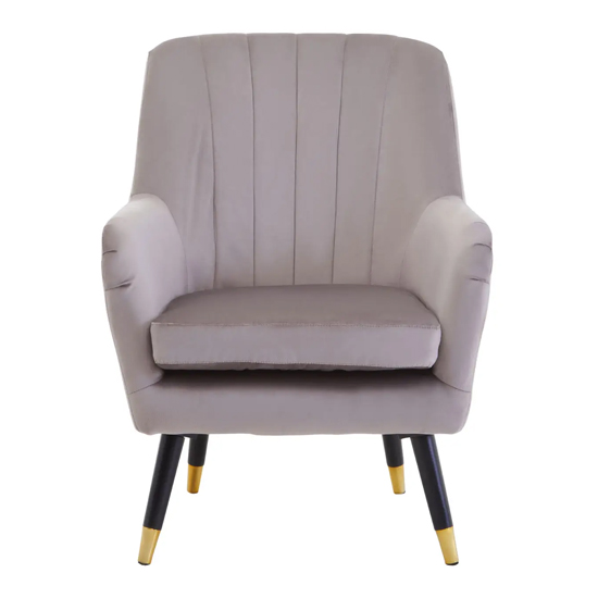 Lagos Velvet Scalloped Armchair In Mink With Black Legs