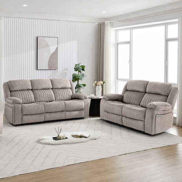 Martinez Fabric Electric Recliner 3+2 Seater Sofa Set – Taupe